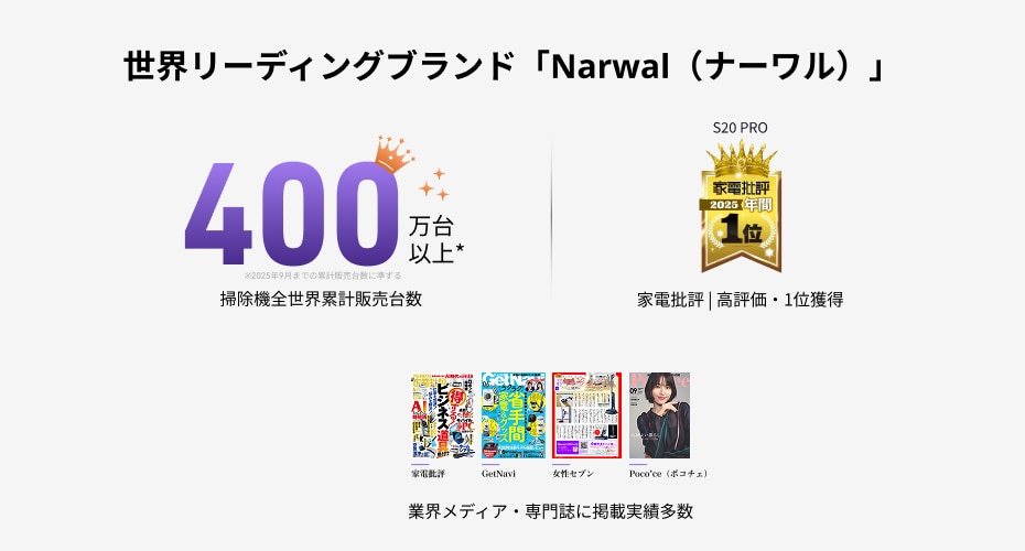 [公式]Narwal(ナーワル) S20 Pro コードレス水拭き掃除機 20,000Pa強力吸引 モップ自動洗浄機能付き 乾湿両用 家具の下も清掃可能 フローリング、タイル、石床専用 絡まりゼロブラシ搭載 子どもやペットのいるご家庭に最適【1年保証】