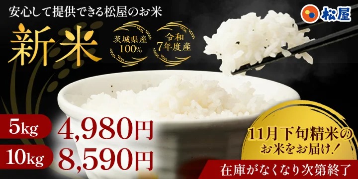 最短11月26日出荷! 松屋 公式 新米 令和7年度産 国産ブレンド米 10kg (5kg×2袋) 茨城県産 100% お米 米 こめ コメ 白米 精米 国産 まつや 食品 グルメ 送料無料 業務用 お試し 食事 保存食 非常食 ブラックフライデー