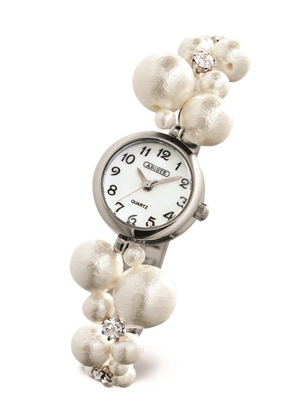 大きさの異なる5種類のコットンパールにクリスタルガラスを散りばめており、華やかさを添えてくれます。