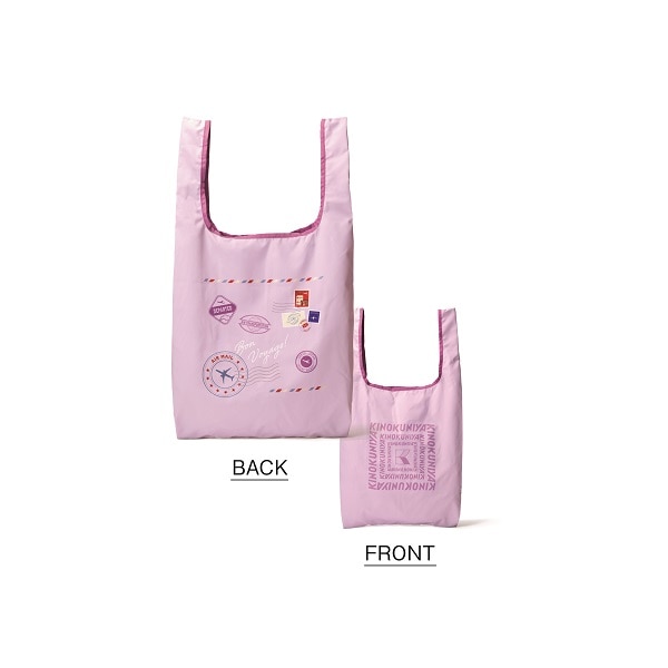 表面はKINOKUNIYAロゴ、裏面は飛行機モチーフのスタンプやエアメールの絵柄入り。