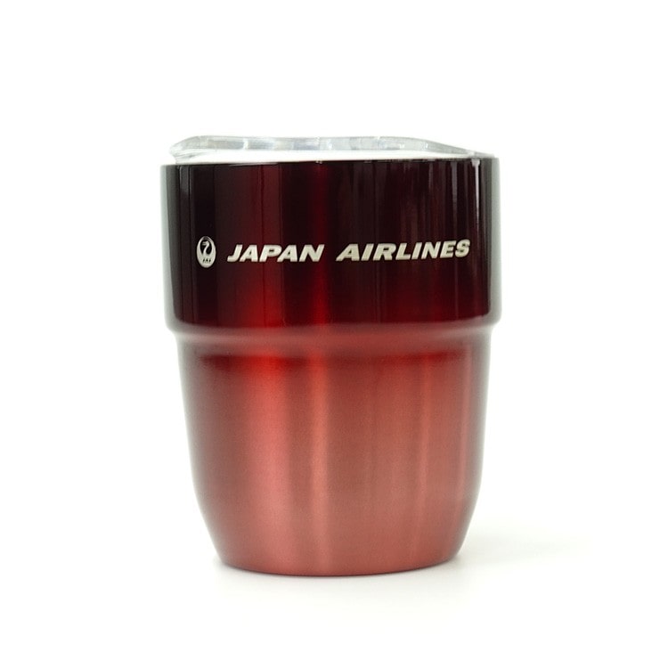 特殊なグラデーション塗装技術を用い、高級感のある仕上がりのJALオリジナルタンブラー。収納時やお外への持ち運びにも便利なスタッキング可能仕様です。真空二層構造(ダブルウォール)で保温性に優れており、直接触っても熱さを感じにくく、水滴の発生も制御します。スライド開閉可能なフタ付き。