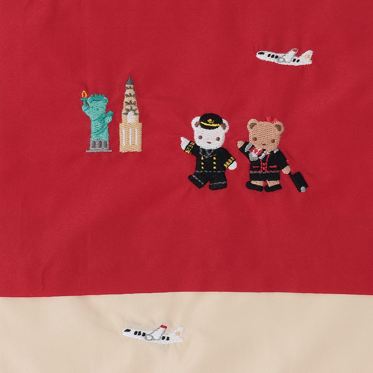 今回のテーマ、JAL直行便が飛んでいる都市「ニューヨーク」をモチーフとした可愛いデザインを刺繍で表現。