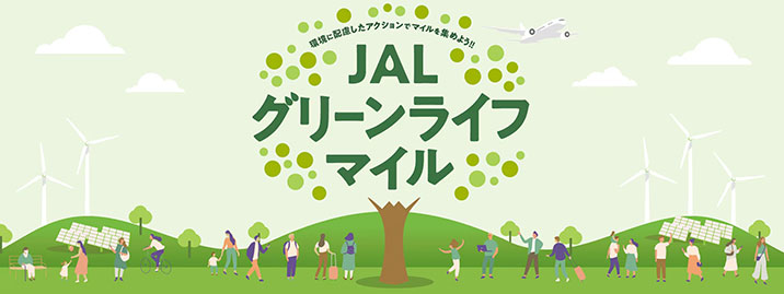 JALグループは、事業活動を通じて社会の課題解決に取り組み、持続可能な社会の実現に貢献することを目指しています。JALの提供する「環境に配慮したアクション」にご参加いただいた方に、JALグリーンライフマイルをプレゼント!50マイルの他にJALグリーンライフマイルがプレゼントになります。こちらのバナーから特設ページをご覧いただけます。※マイルの積算時期はそれぞれ異なります。