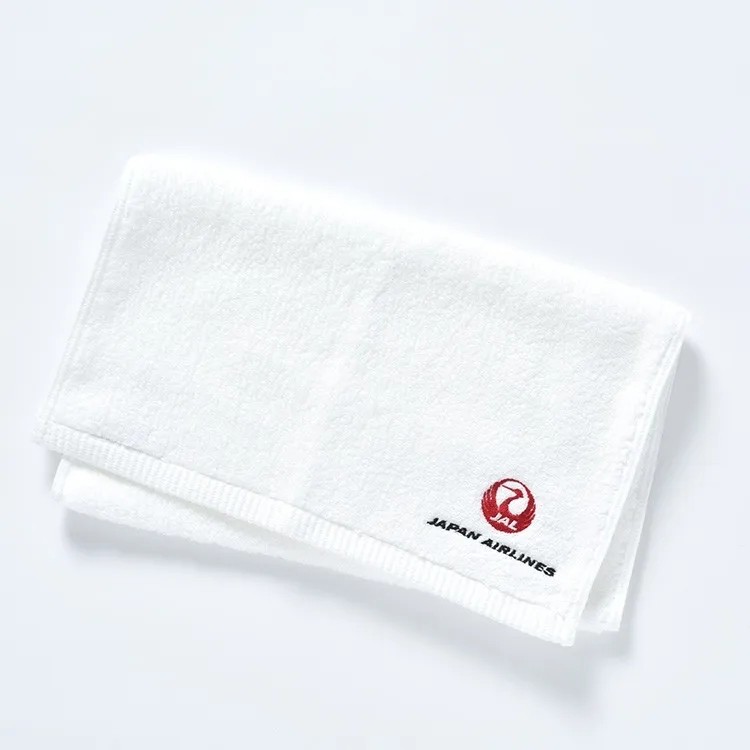 フライトアイコンの刺繍を施した、JALオリジナルの今治ハンド&フェイスタオル