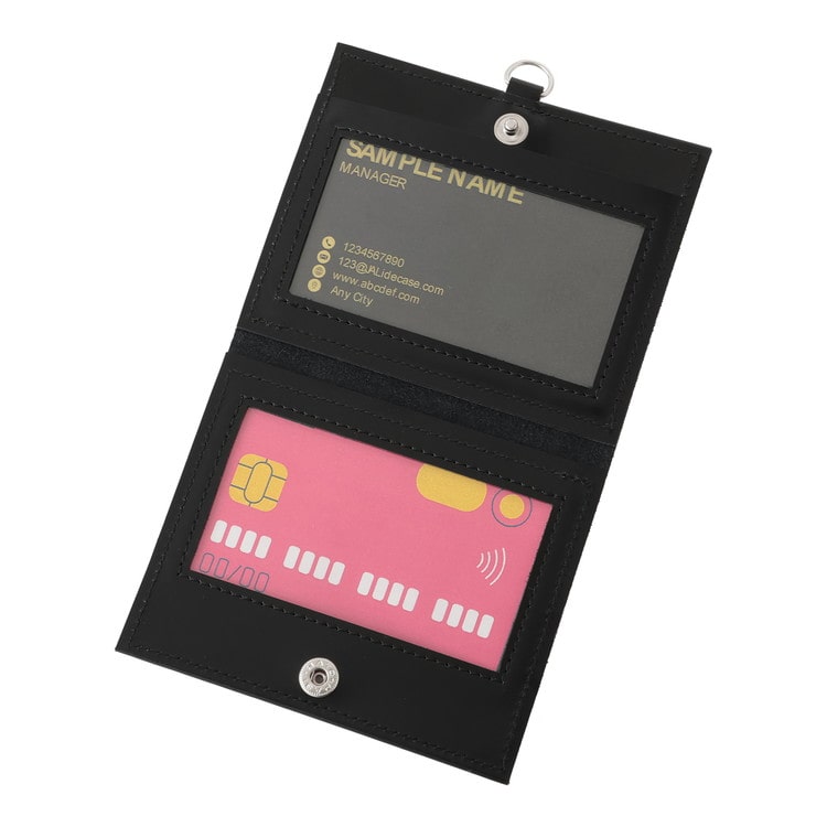 内側には2枚収納可能。上下にボタンがついているので、この面を正面にして使用する事も可能