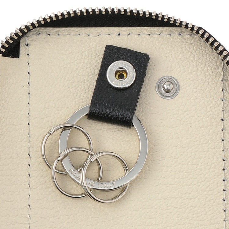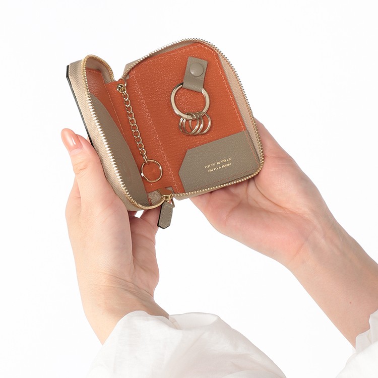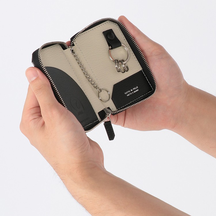 ●サイズ(約):幅7.5×高さ10.3×待ち2.7cm ●素材:やぎ革 ●仕様:カードポケット×2、フリーポケット×1、キーリング×2 ●イタリア製
