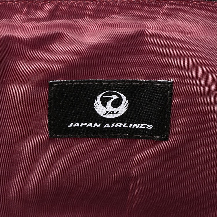 がばっと開くがま口タイプを採用。大容量かつ荷物が一目瞭然で使い勝手抜群。JALシートベルトをイメージしたカラーリングもポイント。