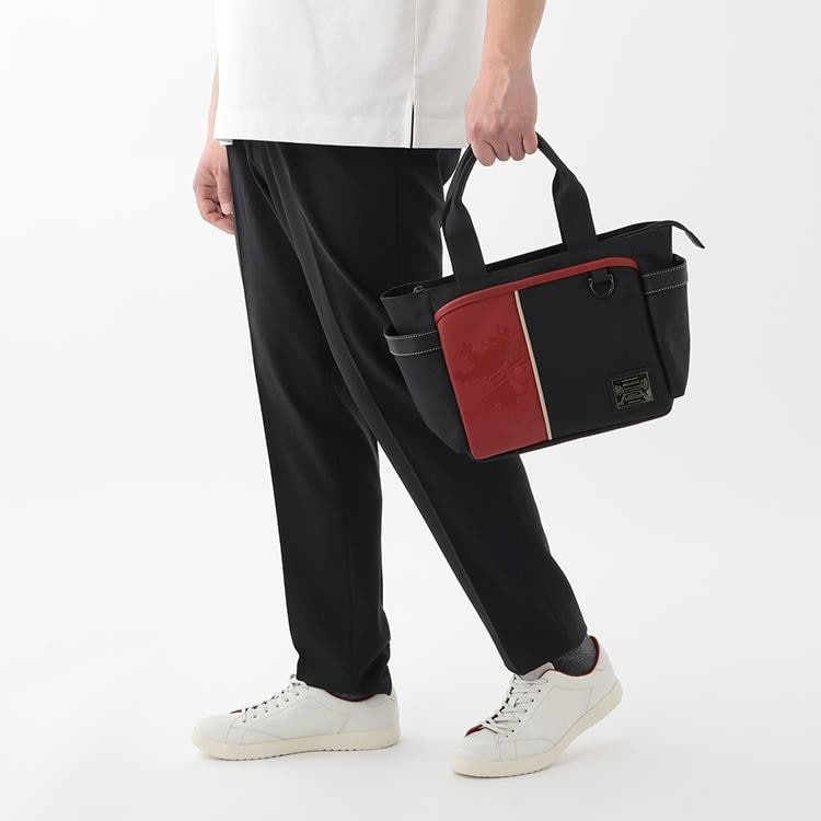 スポーツでも、ちょっとしたお出かけにも便利なミニトートをJALオリジナルカラーでご提案します。特におすすめなポイントは収納力です。両サイドのポケットには、スマートフォンやペットボトルの収納が可能、また背面にはチャック付きでポケットをご用意しました。個人的な経験ですが、ゴルフ場で土や芝生がカートトートに入ってしまう事があまり好きではなく、ちょっとしたポケットにもチャックがついていると便利だと思った事が企画の背景です。