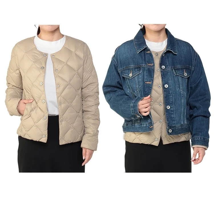 - 今や知らない人はいないほど人気のインナーダウンブランド「TAION」との別注企画が実現ました。昨今の暖冬により、薄手のインナーダウンの人気は衰え知らず。中でも「TAION」はダウンや素材にしっかりこだわり、使うほどに、その品質の良さを実感いただけるはずです。今回ご紹介するのはレディース向けのインナーダウンですが、アウターとしても十分お使いいただけるあたたかさです。コンパクトなので、電車や飛行機での移動時に邪魔にならないのも嬉しいポイント。この機会にぜひお求めください!