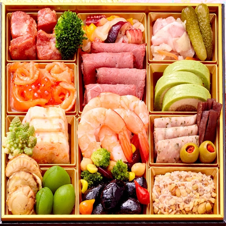 和洋の豪華なメニューが2つのお重に、異なった味をお楽しみください。
