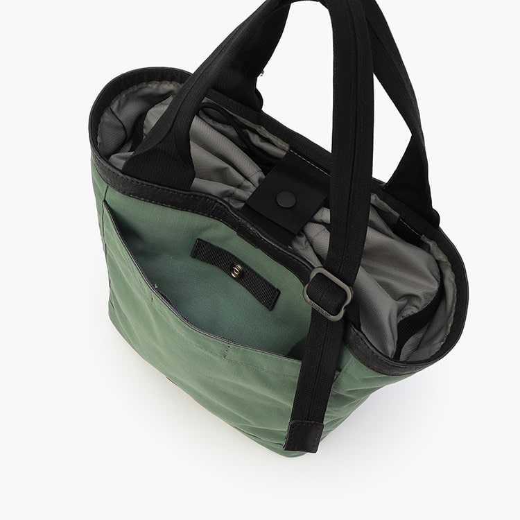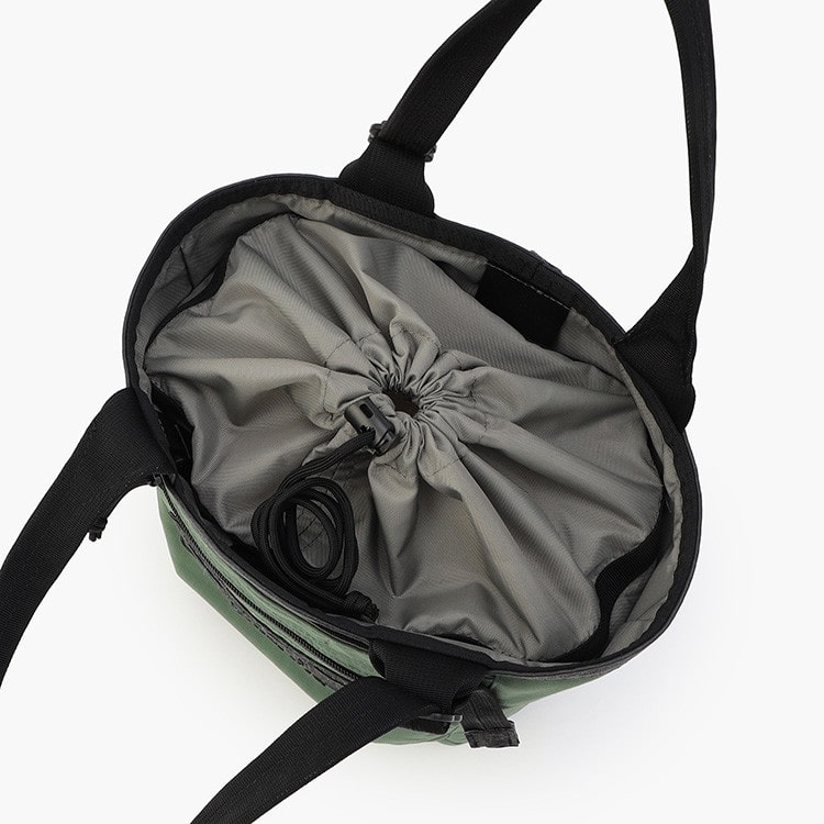 ●サイズ(約):幅27×高さ29×マチ15cm、ハンドル/高さ50~57cm ●重量(約):540g ●素材:表地/フルダルコーデュラリップ ストップナイロン ●仕様:開閉=巾着式、外側/ファスナーポケット×1個、フラップポケット×2個、内側/ファスナーポケット×1個、フリーポケット×4個 ●中国製