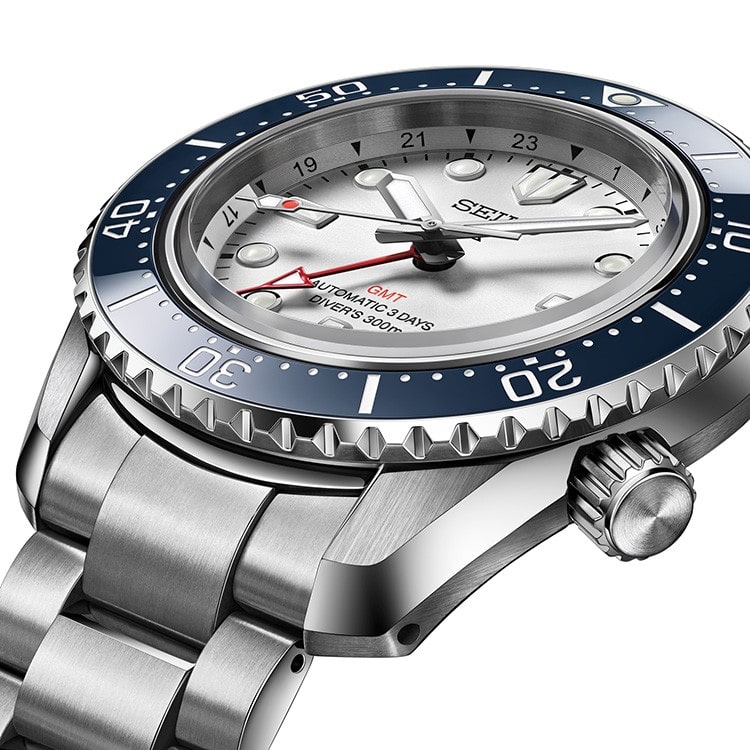 ブルーセラミックベゼルとホワイトシルバーダイヤルの爽やかなコンビネーション