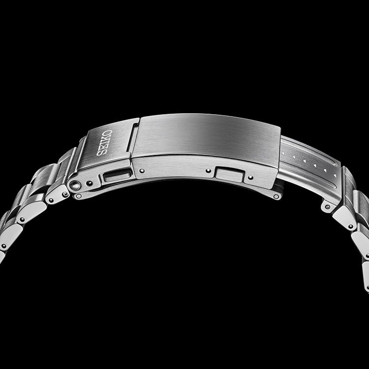 最大約15mmの調整幅があり、約2.5mmずつ、6段階で調整を行うことができる新開発の中留をレギュラーモデルでは初採用。これにより、潜水時はもちろん、日常生活における腕周りの変化などにも対応ができ、常に快適な着用感を保ちます。
