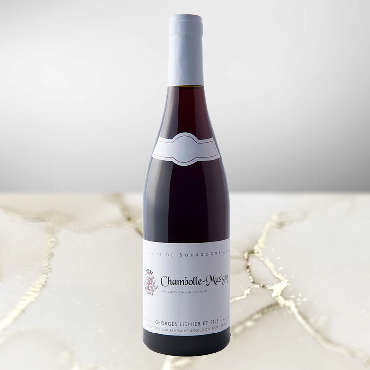 シャンボール・ミュジニーの村名クラスでありながら、特級畑ボンヌ・マールの真下に広がる絶好のロケーションを誇る区画「ビュシネール」と「ドラゼイ」から造られます。栽培面積はわずか約0.84ヘクタール。土壌は小石や砂利が多く、豊富な鉄分を含んでおり、これがワインにしなやかさと特有の気品を与えます。ドメーヌ・ジョルジュ・リニエは、ブドウと環境を尊重する農法を守り、伝統的なギヨ・サンプルで仕立てています。年間生産量は約4,700本。モレ・サン・ドニに隣接するこのエリア特有の力強さと、シャンボール本来の優雅さが共存するスタイルです。美しい赤色の色合い。若いうちはフランボワーズを筆頭に、小粒の赤実フルーツの瑞々しいアロマが華やかに漂います。口当たりは非常にソフトでしなやか。シャンボール・ミュジニーらしい優雅な果実味が口いっぱいに広がります。熟成を重ねるにつれ、フルーティーな香りは次第に肉厚なニュアンスや野生的な香りへと変化し、より深い複雑さを帯びていきます。収穫から2年目という早い段階から美味しく楽しめますが、10年以上の熟成にも耐えるポテンシャルを持ち、時間が育む官能的な進化を堪能できるスタイルです。