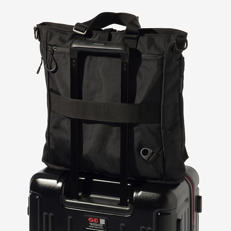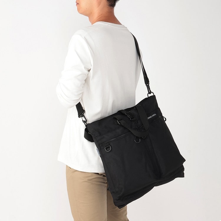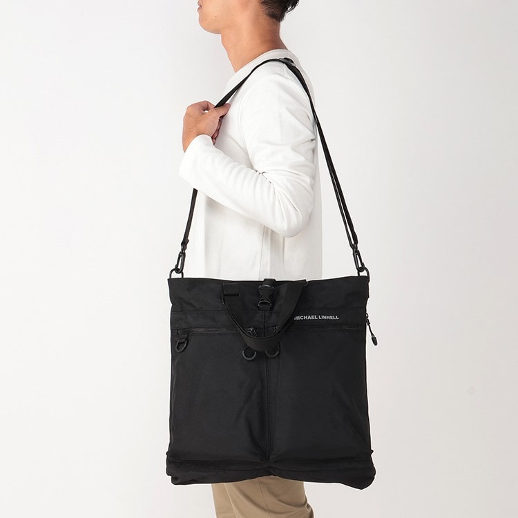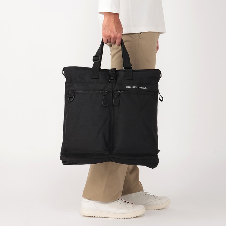 PCスリーブを備え、手提げトート・肩掛けトート・リュック・ショルダーと4WAYで使い分けができるヘルメットバッグです。