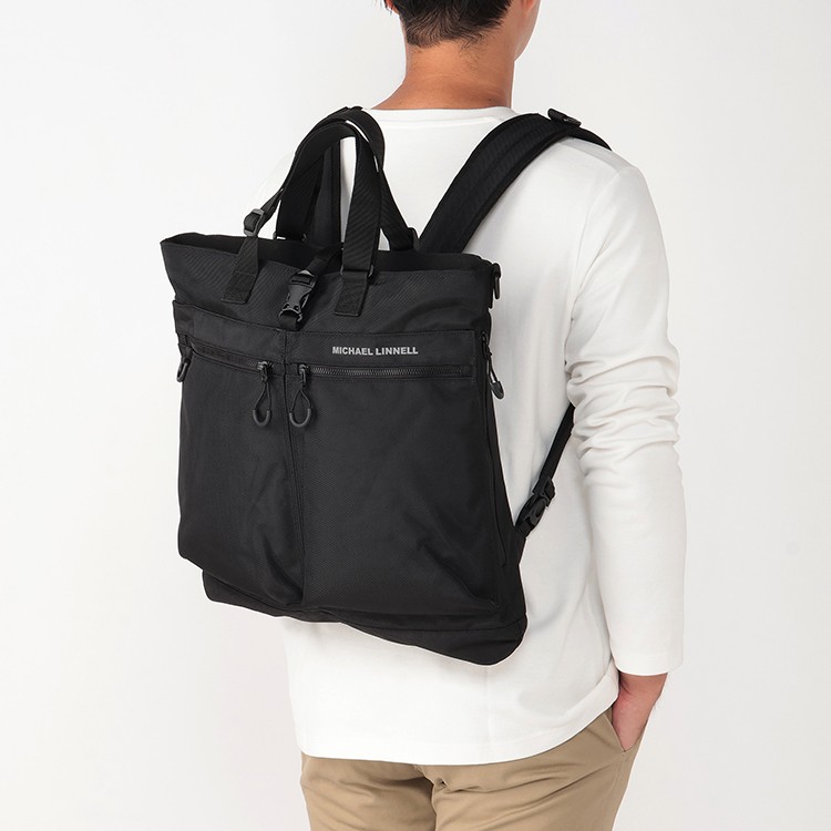 ●サイズ(約):幅43×マチ8×高さ43cm、ハンドル/高さ14~29cm(調節可能)、ショルダーストラップ/長さ72~132cm(調節可能) ●容量(約):18L ●重量(約):1,035g ●素材:ポリエステル ●仕様:開閉=ファスナー式、外側/ファスナーポケット×2個、内側/ファスナーポケット×1個、PC収納 ●付属:キーホルダー ●ベトナム製