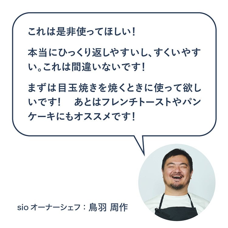 dreamfarm×sioのコラボレーションアイテム。 薄く柔軟性のあるスパチュラターナーは、食材がすくいやすいだけではなく、カットすることもできます。