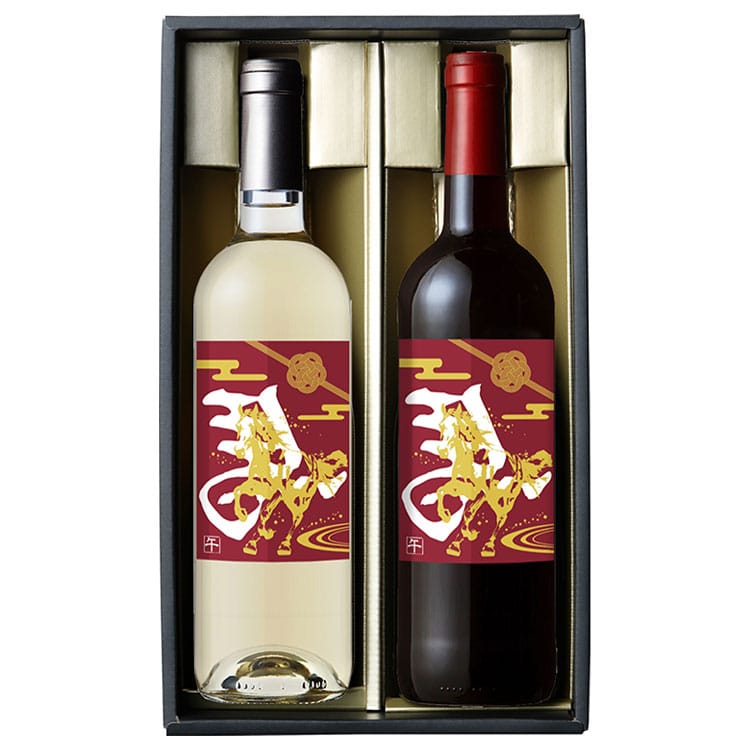 馬の疾走する姿から、午年は活発で行動的な年とされ、物事を積極的に進めるのに良いと言われています。2026年の新たな挑戦が上手くいくよう、縁起物とされる「左馬」を描きました。趣きのある和紙製ラベルに箔押しで仕上げています。