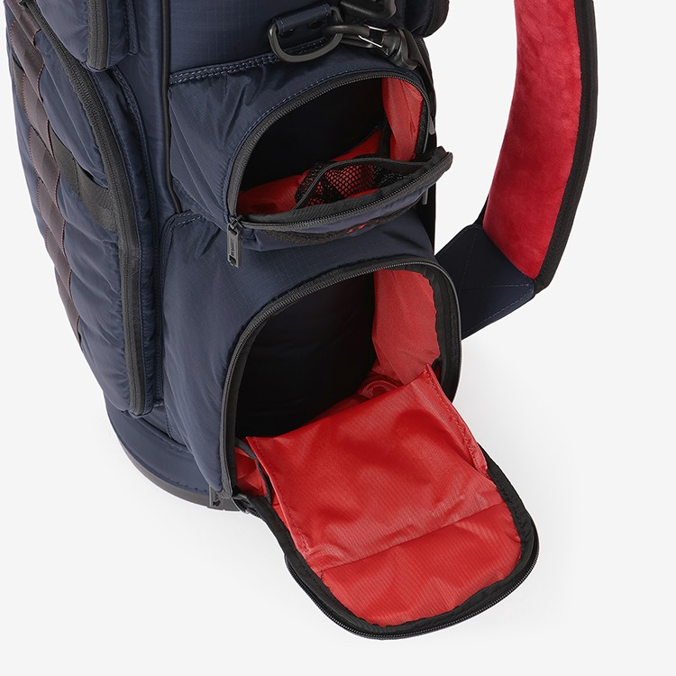 予備のボール1ダースを収納できるポケットや、ティーをまとめて収納できるポケットも搭載。