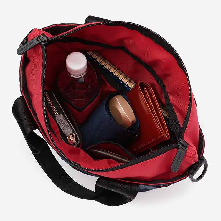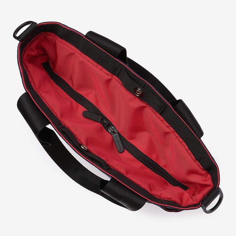 落ち着いたネイビーをベースとし、内装とステッチに赤を効かせたオリジナル配色。