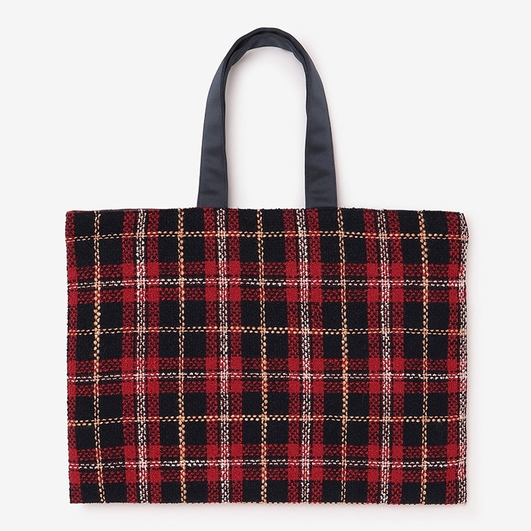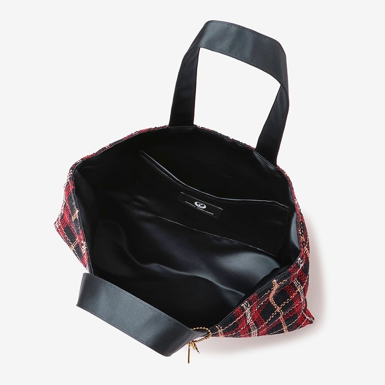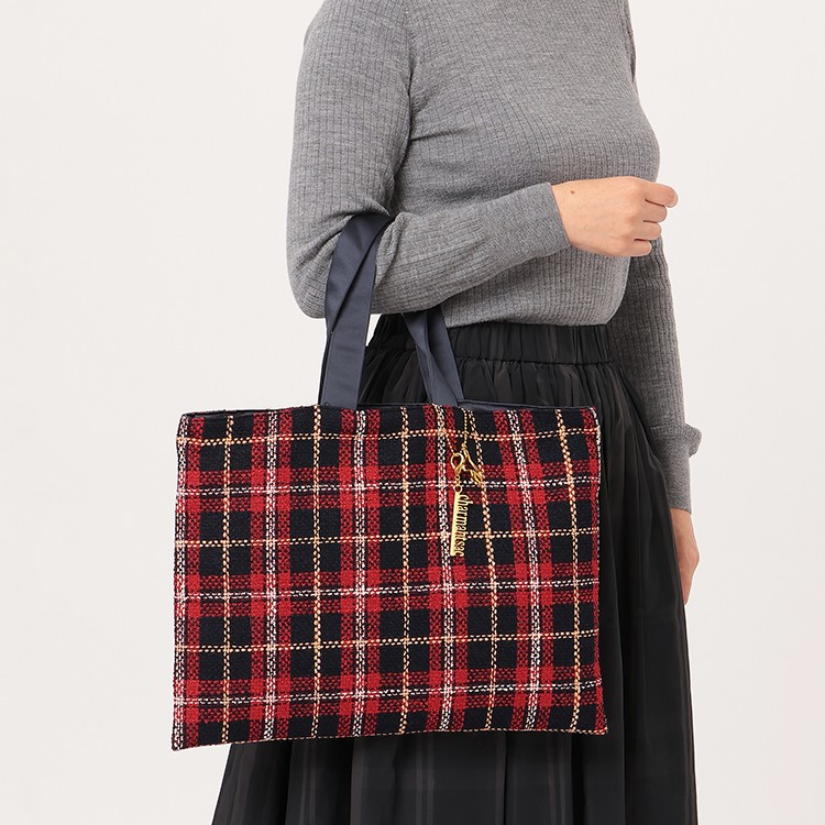 シャルマントサックの代名詞、ツイード生地を使ったトートバッグ。赤いカラーで別注しました。