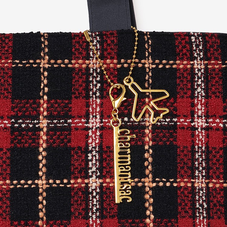 ブランド名のチャームに加え、飛行機のチャームを特別に付けました。着脱可能で、お手持ちのバッグにも付けられます。