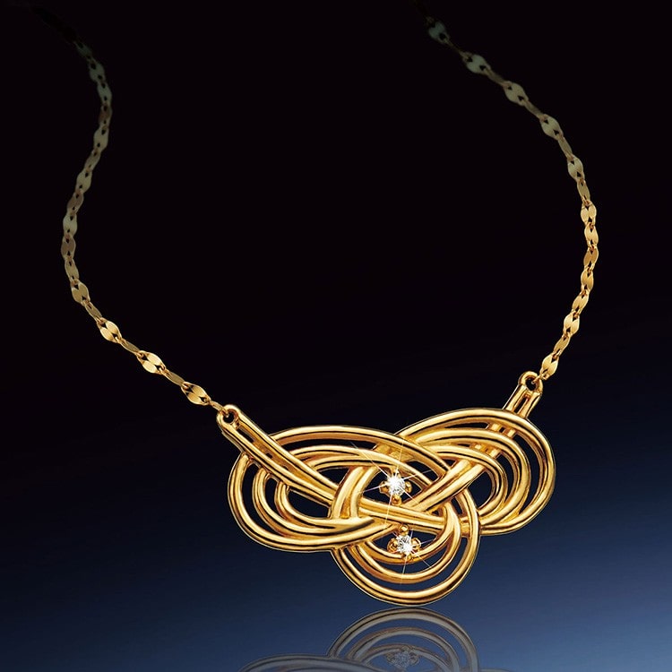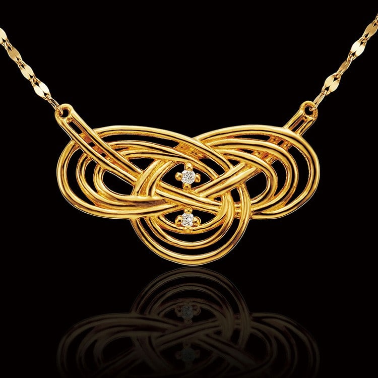 純金999が、ダイヤモンドとともに、あふれる豊かさで心を満たす、和テイストの宝飾ペンダントです。