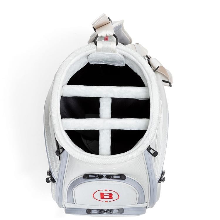●サイズ(約):幅26×高89×マチ40cm ●重量(約):6,000g ●素材:表地/1680デニール×840デニール エアーバリスティックナイロン ●対応クラブの長さ:47インチ ●口径:9.5型 ●口枠:4分割 ●付属:ショルダーベルト ●中国製
