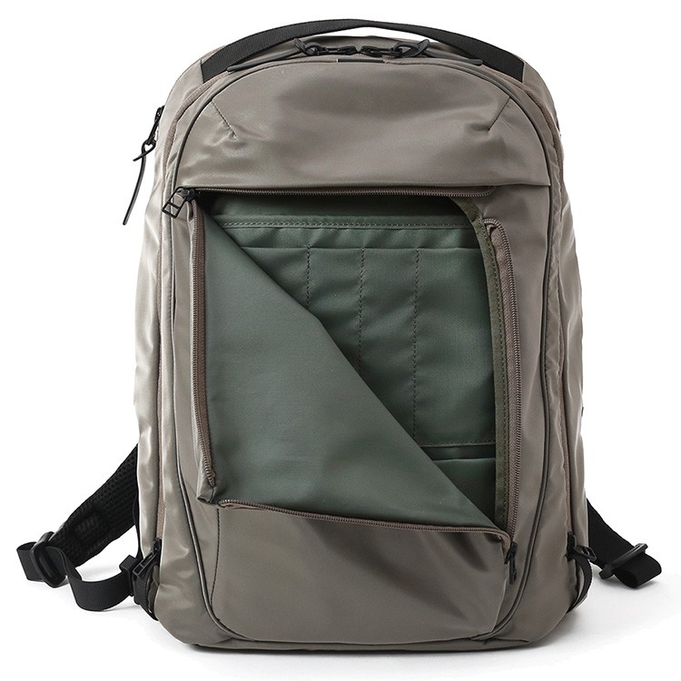 機能性を持たせながらミニマルなデザインに仕上げたコレクション。小松マテーレの超耐水加工「ダントツ撥水」を施した高密度ナイロンツイル素材を使用。