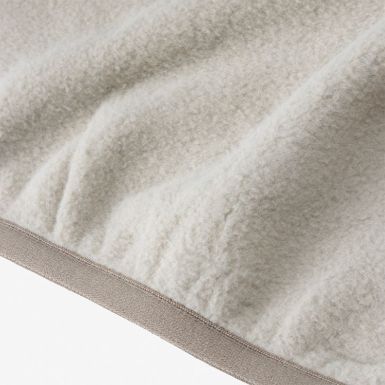 1990年代に「暖かな軽量。激しい動きのヨットマンに贈る中間着。」をコンセプトに登場した、当時のブランドを代表するアイテムを、現代的にアップデートしました。リサイクルポリエステルを使った環境配慮型の素材で作ったフリース生地を採用。古着や残反といった繊維を原料に、新たな生地として生まれ変わらせたリサイクル素材、RENUを使用しています。薄手タイプで、アウターにもミドラーにも着用しやすい肉厚感。ゆったりとしたシルエットと異素材切り替えで表現した配色感が、デザインのポイント。襟やポケットは、配色感のある別生地で補強しています。フロントは、ドットボタン+ファスナー仕様。左胸と襟裏にあしらった織りネームのロゴは、当時をイメージしたデザイン。腰ポケットの引手をカラフルにするのも、当時からのこだわりです。
