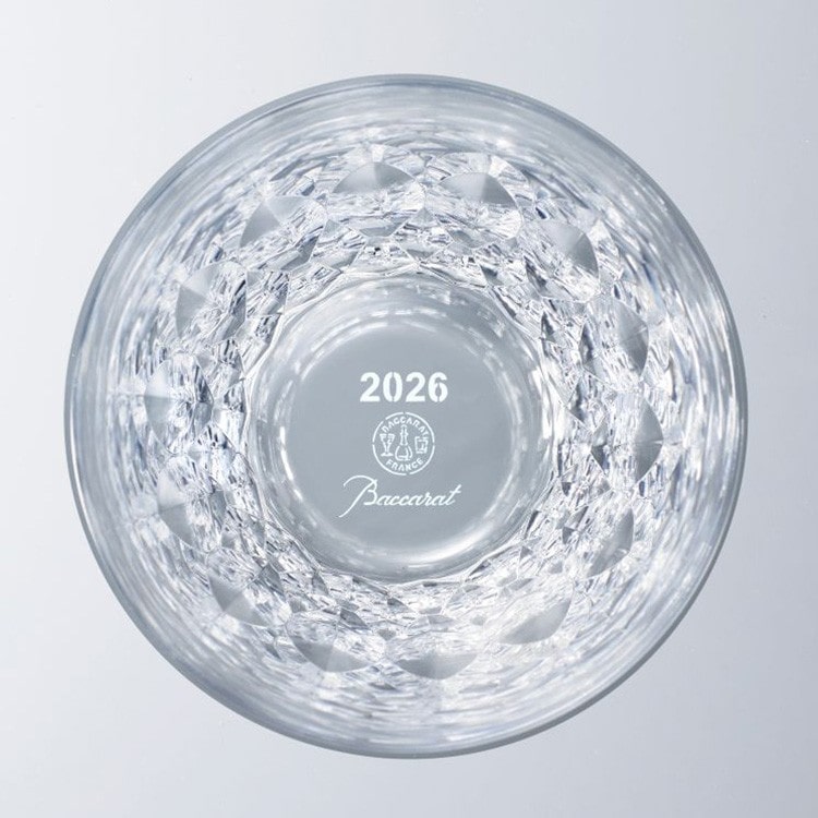 2026年の年号が刻まれた『ダリア』タンブラーは、幾重にも重なる花弁の美しさを、リッチなベヴェルカットで表現。光を受けてきらめくその姿は、まるで大輪の花がクリスタルに咲いたかのようです。