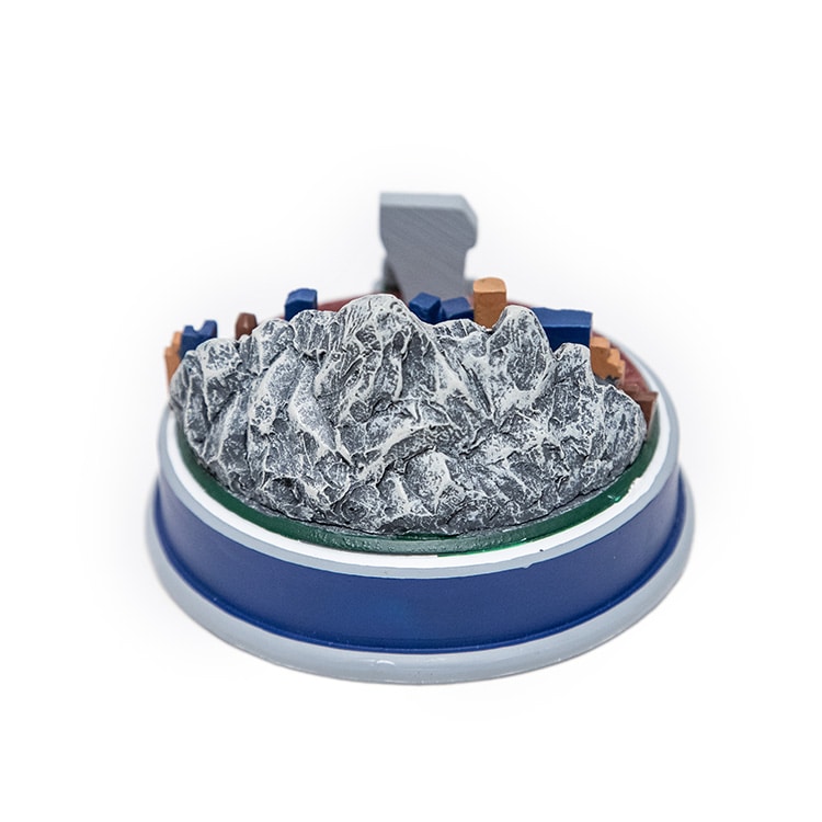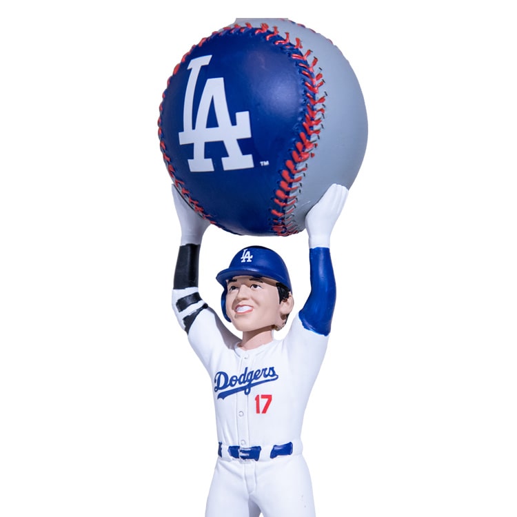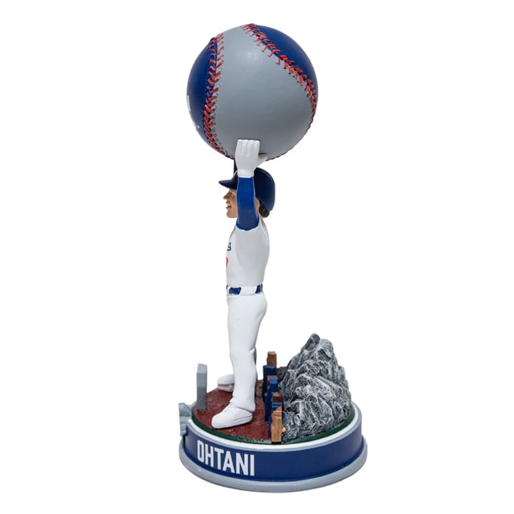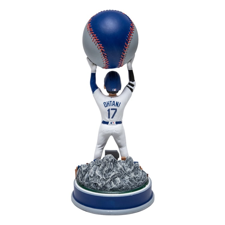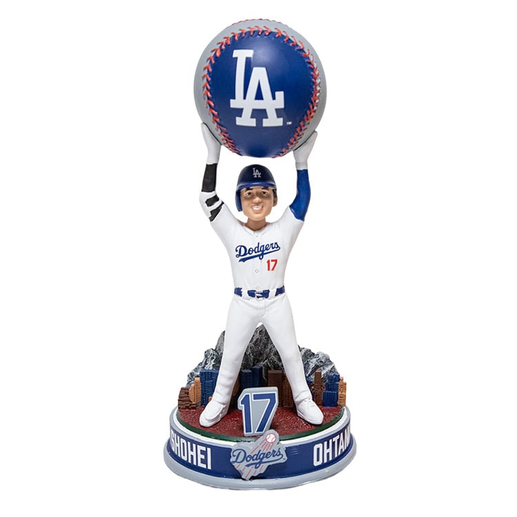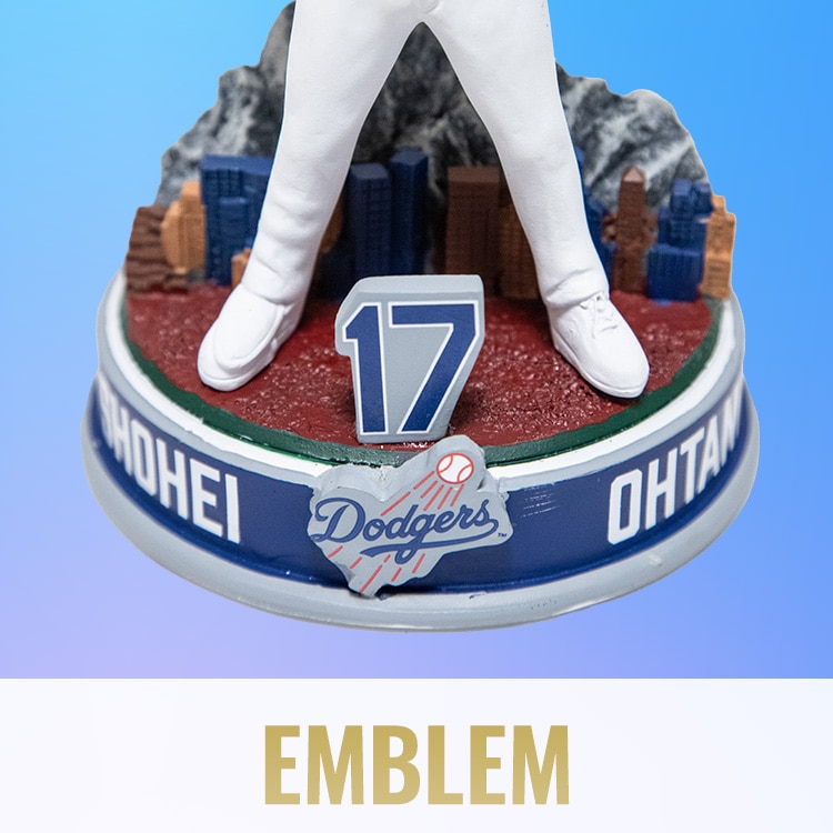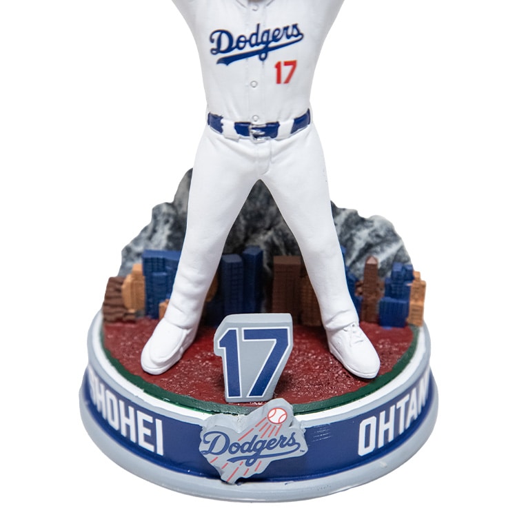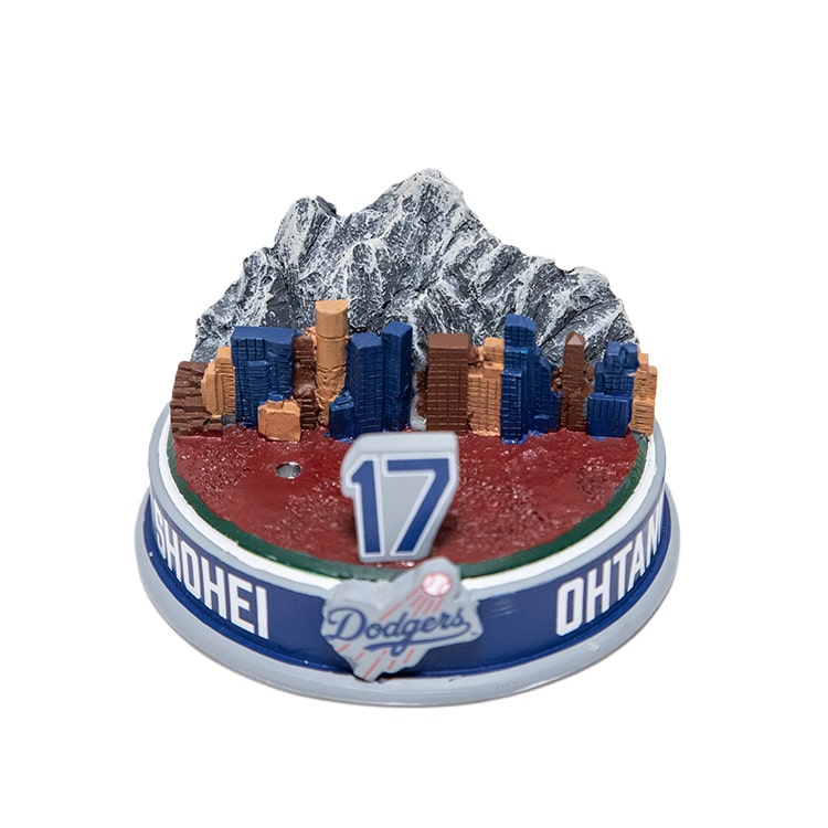 台座には背番号「17」と「ドジャース」エンブレム、背景にはロサンゼルス・ダウンタウンとサンガブリエル山脈を立体造形で再現。