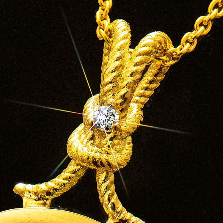■ロープノットをモチーフにした18金製のバチカンとフレーム