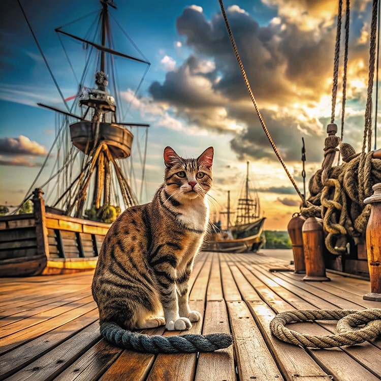 古来より猫は神秘的な能力を持ち、天候を操ると信じられてきたため、安全な航海へと導く縁起の良い動物として大切にされてきました。また、故郷を離れて仕事をする船員たちにとっても、シップスキャットはかけがえのない仲間となり、癒しをもたらしてきたといわれています。