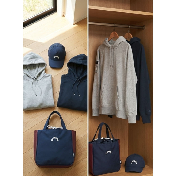 JONES社が販売する「アスレチック・ジョーンズ・ユーティリティ・スナップバック」をモデルに、公式サイトでは25年11月現在販売を行っていないネイビー色にシンプルながら目立つ「JONES」そのもののロゴを採用しました。
