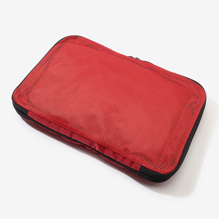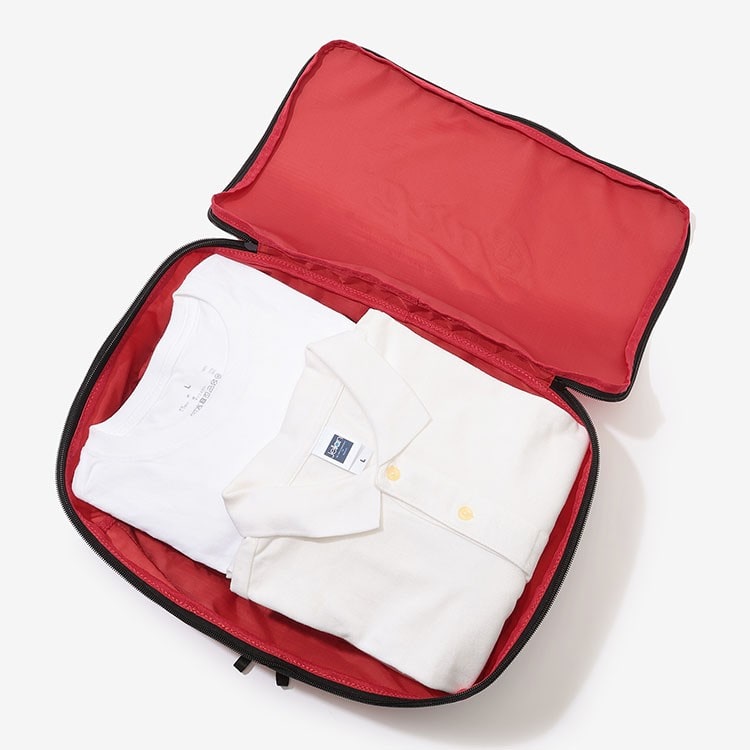 背面のメッシュ部分も赤にした事で、中身の視認性が高まります。