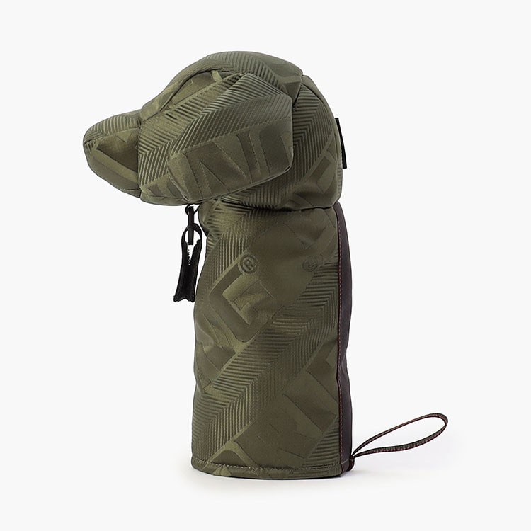 リモンタ社に別注したブランドオリジナルの柄をジャガード織りで表現したナイロン素材をドッグ型ヘッドカバーに落とし込みました。