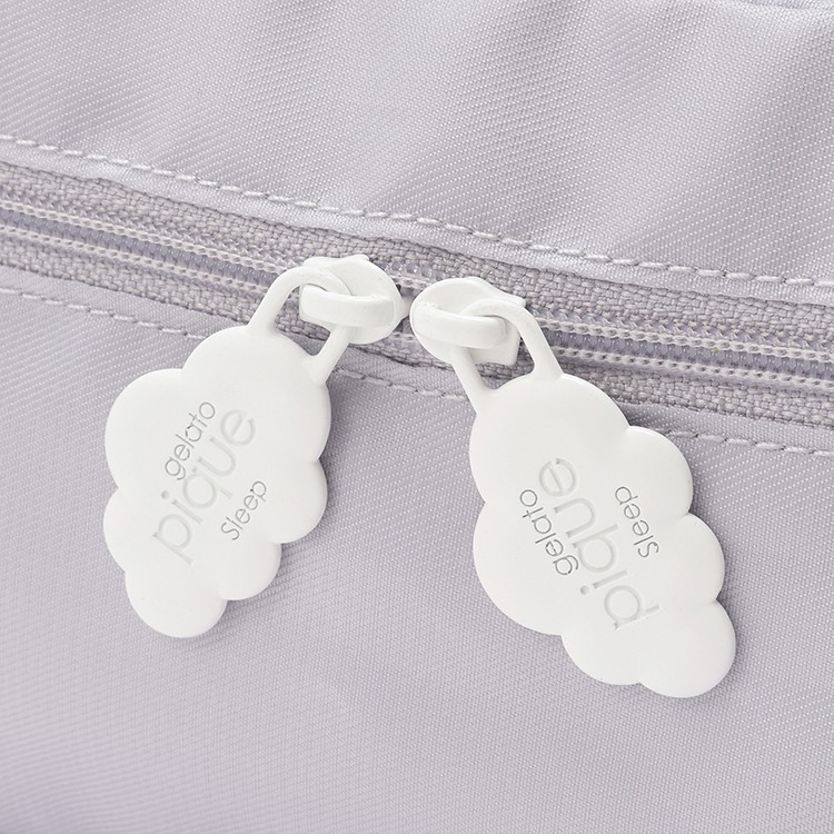 「gelato pique Sleep」のロゴデザインをかたどったファスナー引手。持つだけでテンションが上がります。