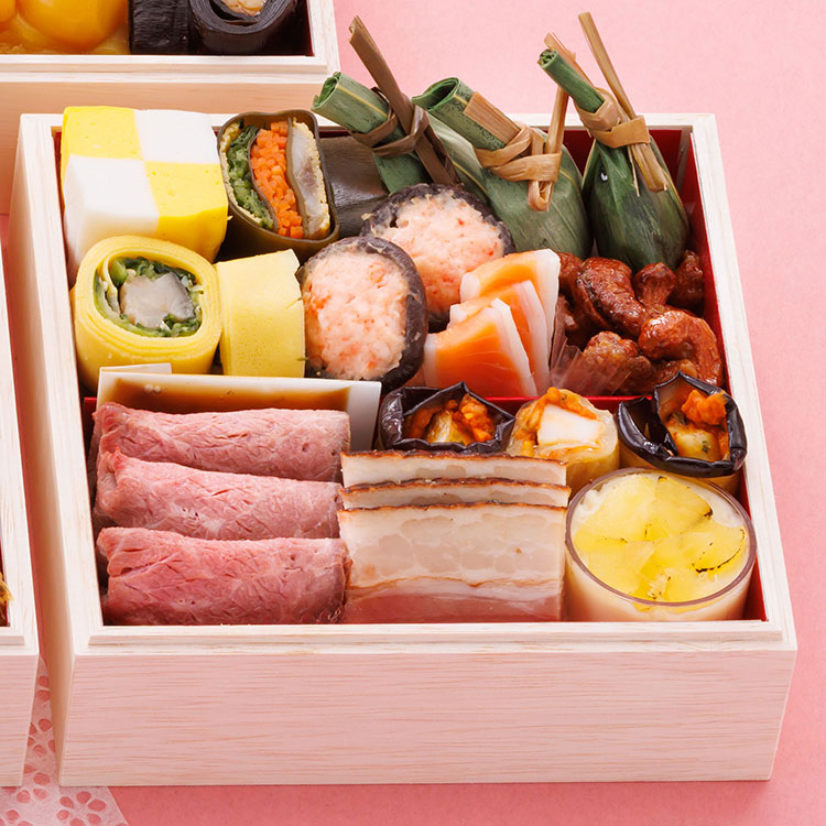 山形出身の店主、佐藤弘治氏が監修し、素材の味を大切にしながら彩り豊かに詰め合わせたおせちです。おせちの定番・和のメニューを中心に、ローストビーフなど洋の味わいも楽しめる38品目。