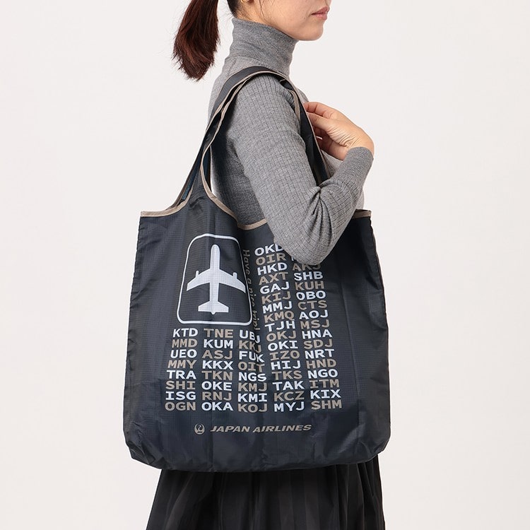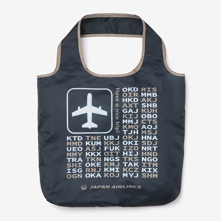 JAL国内線就航空港* 3レターを全面にデザインしたJALオリジナルのエコバッグ。収納時はコンパクトにたたんで、持ち運びにもとっても便利。お買い物時はもちろん、いつものバッグに入れておけば、急に荷物が増えた時にも大活躍。