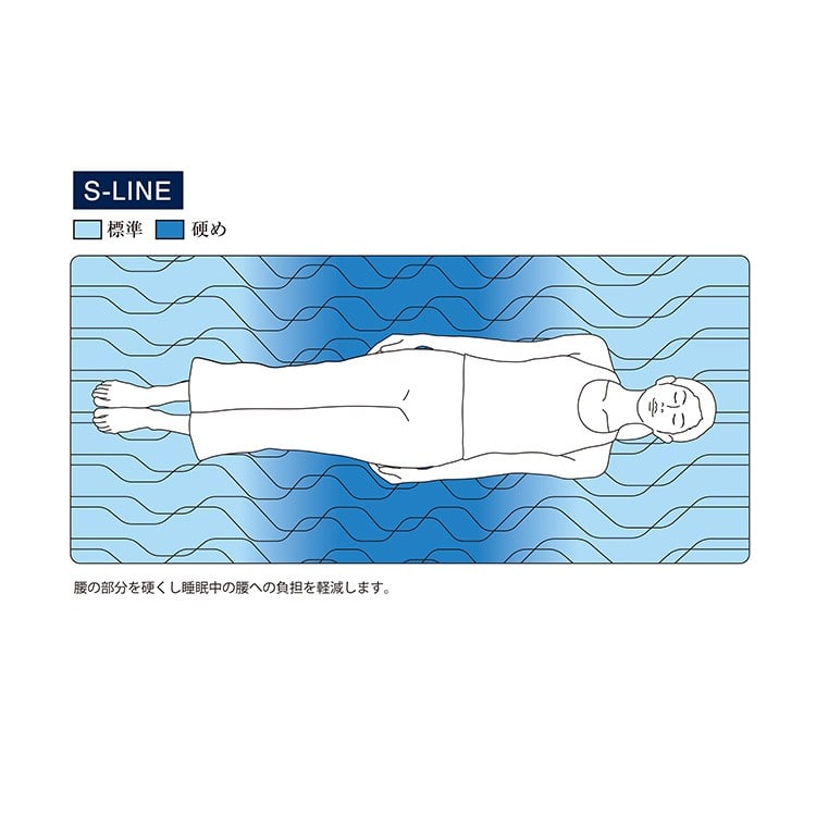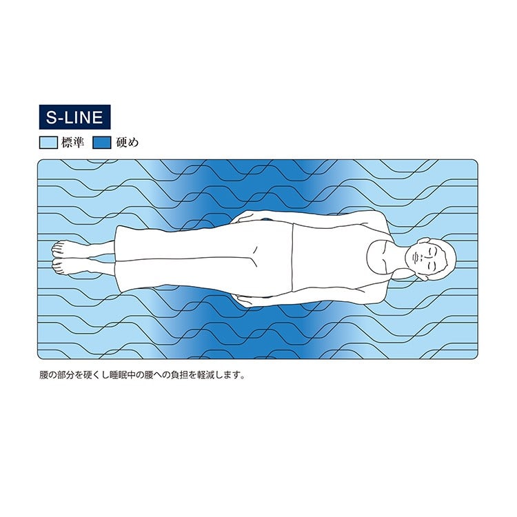 エアファイバー®の適度な反発力が上質な寝心地を実現。腰部分を硬めに設計することで、理想的な寝姿勢とされる、立っているときと同じ背骨のS字カーブをキープ。