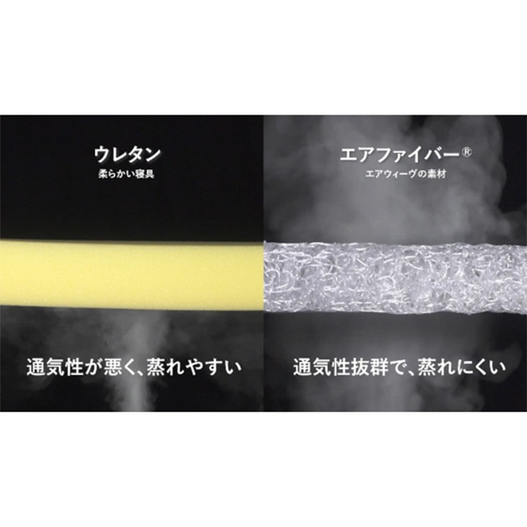 適度な反発力のあるエアファイバー®が極上の寝心地を実現。「寝返りが楽」「優れた体圧分散で肩腰に優しい」「通気性抜群で熱と湿気がこもらない」「いつでも清潔」という4つの特長を備えています。また、腰の部分が硬めに設計されているため、より理想的な寝姿勢を実現します。