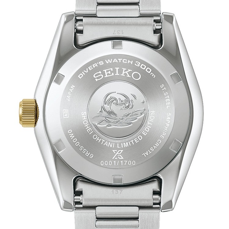 限定モデルならではの特別仕様として、大谷選手の背番号「17」が「りゅうず」に入り、大谷選手のサインが中留にマーキングされています。また、裏蓋には、SHOHEI OHTANI LIMITED EDITIONの文字と限定シリアルナンバーがマーキングされます。
