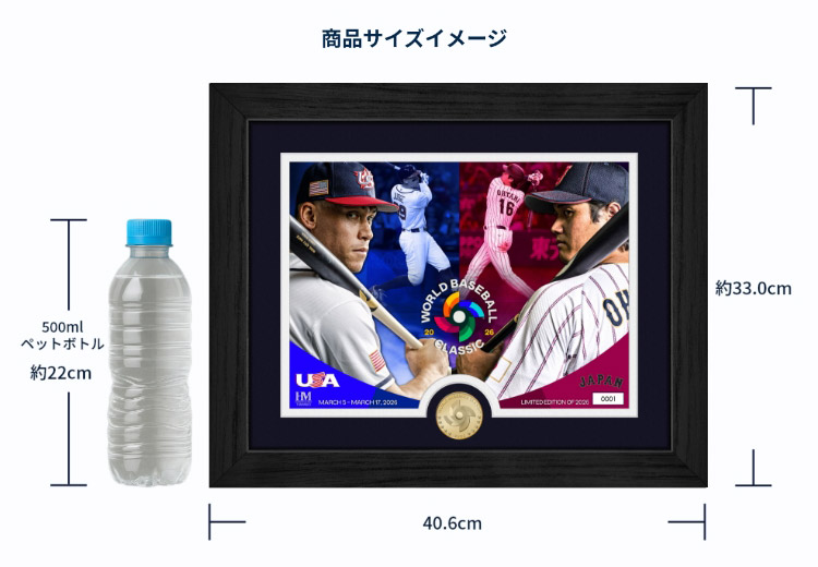2026WBC米国代表 アーロン・ジャッジ選手と日本代表 大谷翔平選手が向かい合う特別デザインモデルです。両国を象徴するカラーリングで構成したビジュアルに、大会ロゴデザインのメモリアルコインをセットしました。