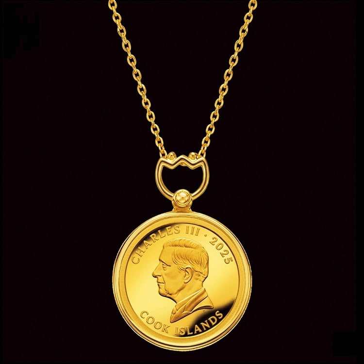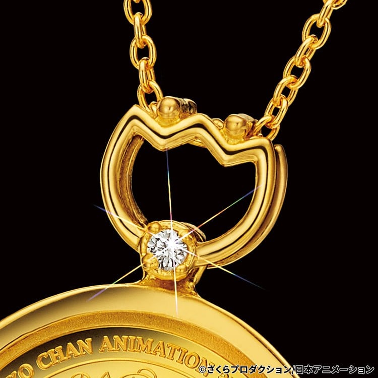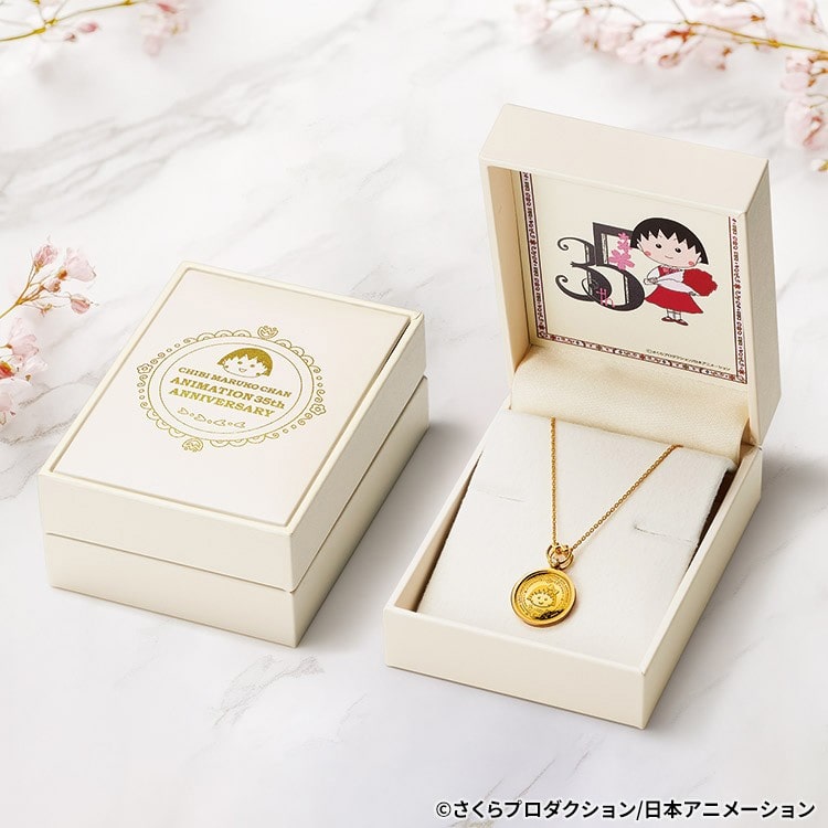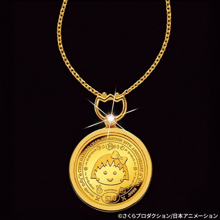高度な鋳造技術も見事な金貨は穴を開けたり加工を施すことなく、無垢のままの状態で18金のフレームにセット。自信をもって身に着けられる純金.9999の気品と、「ちびまる子ちゃん』のかわいらしくも優しい世界観。装いを選ばず、ワンランク上の上質感をもたらす本品は、2025点のみ発行される本物の金貨を用いたたいへん贅沢なジュエリーです。