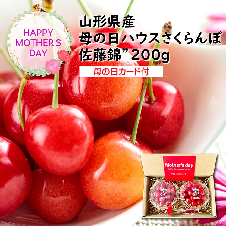 〈日本製〉●内容:さくらんぼ(佐藤錦)100g×2パック、ミニカーネーション(造花)、メッセージカード付