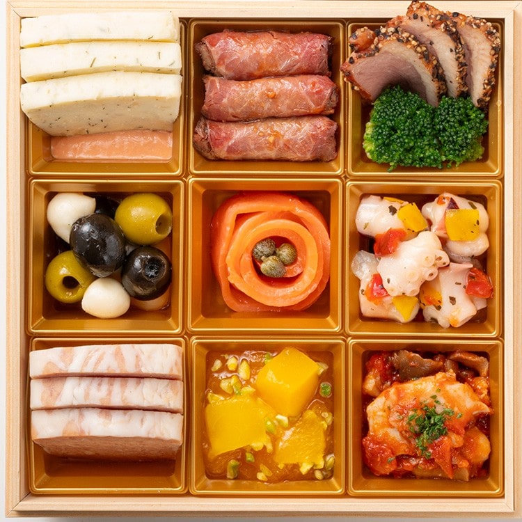 和洋中バラエティに富んだ食材を、シェフ監修のもと仕上げました。オリジナルレシピも入れ込み、彩り鮮やかに。元旦を祝うにふさわしいおせちです。
