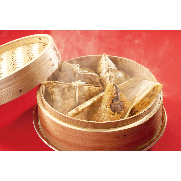 国産もち米を使用した肉ちまきです。味付けに中国醤油と、干しエビを使用しているのでコクがあります。竹の皮で、ひとつずつ丁寧にくるんで蒸していますので、香りのよいおいしさがあります。