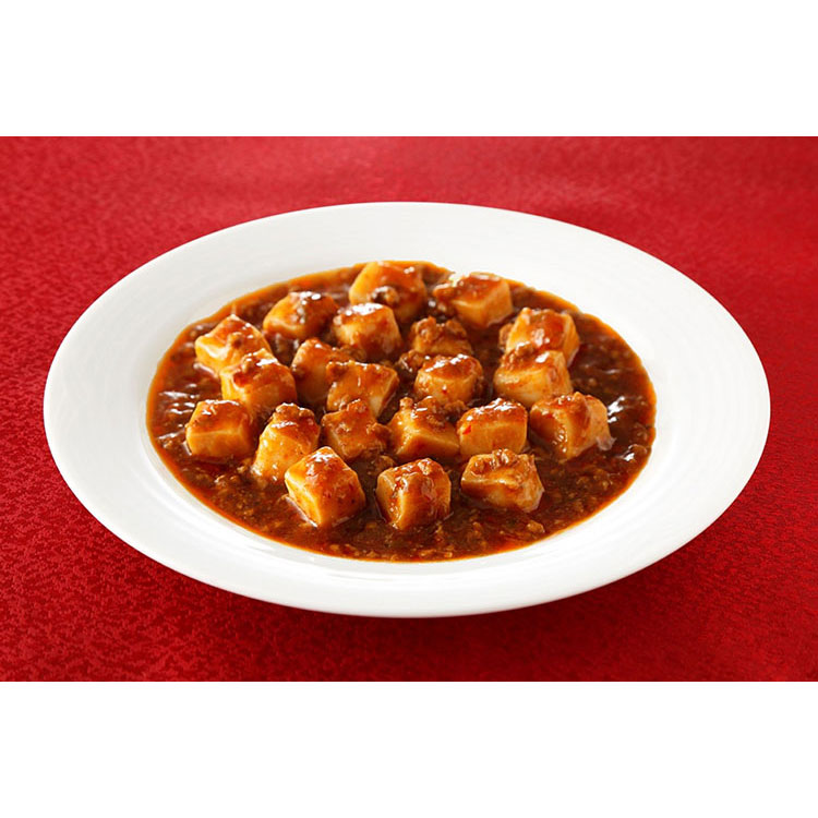 本場四川省産、3年熟成の高級豆板醤と菰田総料理長が厳選した豆板醤をブレンドしたオリジナル豆板醤と強火でしっかりと炒めた肉の旨みが凝縮された炸醤、香り高い花椒油等で旨み・コク・辛味をバランスよく配合した麻婆豆腐の素です。
