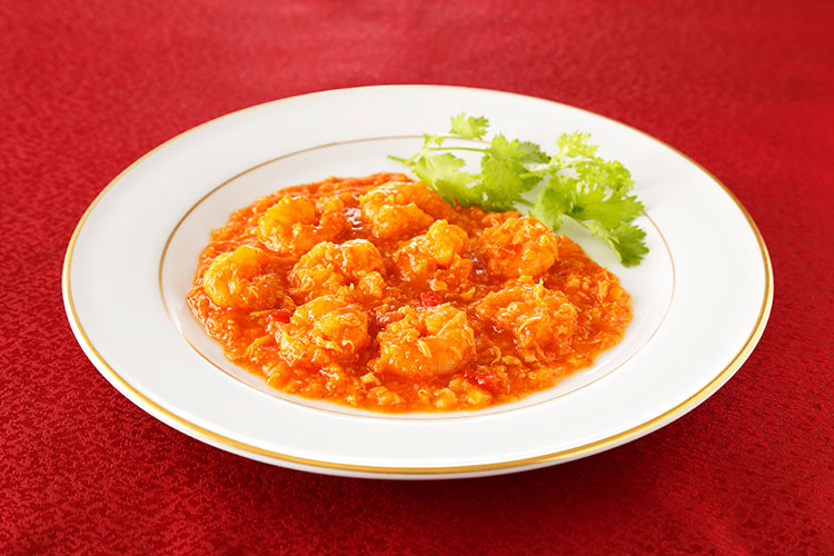 ぷりぷりのエビと卵入りのマイルドな旨みのあるチリソースに、ずわい蟹を加えました。エビとかにのおいしさを一度に味わえる逸品です。